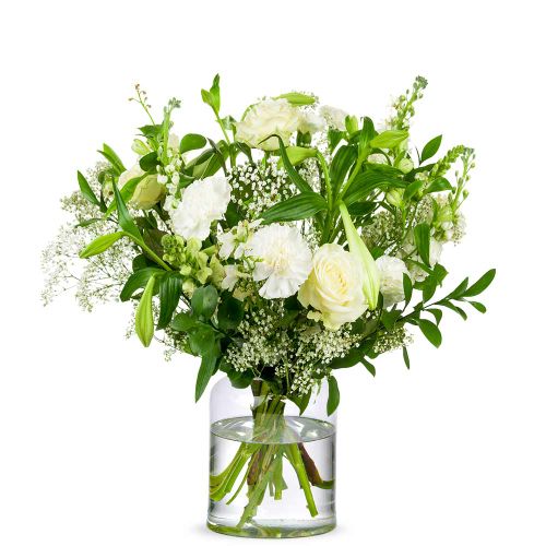 A combination of white flowers make this bouquet a real classic. A white bouquet fits into any interior and can be given on different occasions. Send this bouquet to. for example. thank someone. congratulate or offer condolences.
