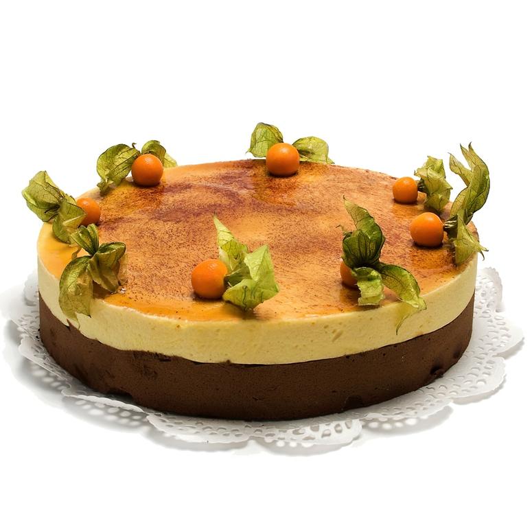 The chocolate caramel cake is a heavenly experience for those with a chocolate and sweet tooth. The rich taste of dark chocolate is perfectly combined with the sweet and creamy taste of caramel. Every bite is a party. Enjoy the creamy caramel mousse with a hint of balsamic vinegar on top of a chocolate brownie base with chocolate mousse. Finished with Cape gooseberries, this delicious cake is a hit at any party. Also great as a dessert. Order the chocolate caramel cake and enjoy this taste sensation.