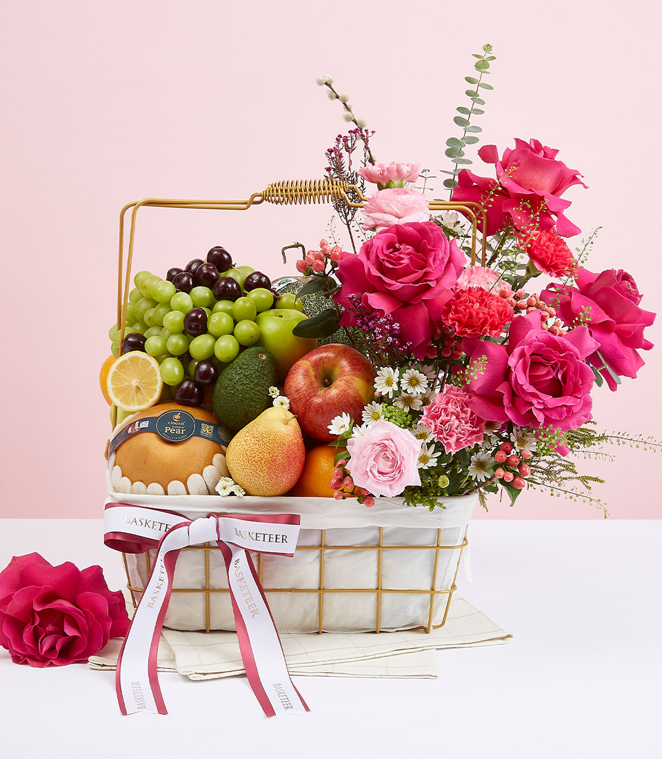 Fruit and flower gift baskets It’s a gift basket that Brezzegifts has arranged and designed beautifully. There is the brightness of the flowers that we have brought flowers imported from Ecuador to decorate in bright colors. Which looks lively, looks fresh, and the colors of imported fruits that we carefully select are of good quality and are appetizing. which is a gift basket suitable for all occasions and all genders and ages Pink Floyd Roses, Imported Roses From Ecuador / 4 Stems