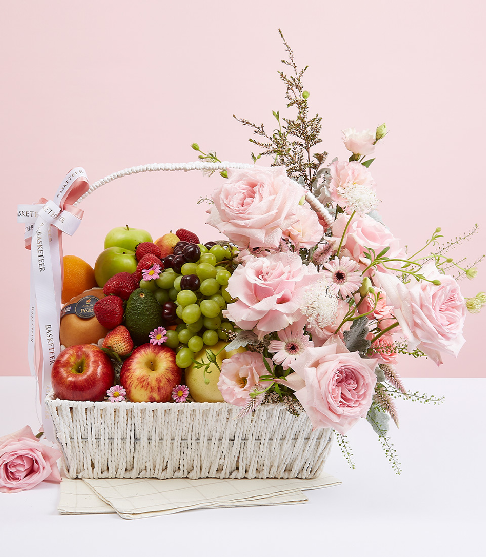 Fresh Fruit & Sweet Pink Flower Gift Basket