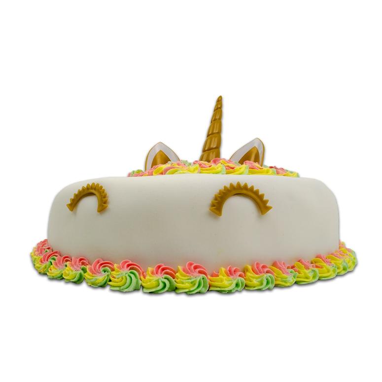 Which unicorn fan will you delight with this festive Round Unicorn Cake? The Unicorn is magical and that makes this cake special. Make every birthday party or children’s party special with a Unicorn cake. The filling of the unicorn cake consists of a delicious fresh strawberry bavarois. The cake contains toys that will certainly delight the birthday boy or girl. A beautiful and very tasty cake, freshly prepared every day with the best ingredients, which will certainly appeal!
