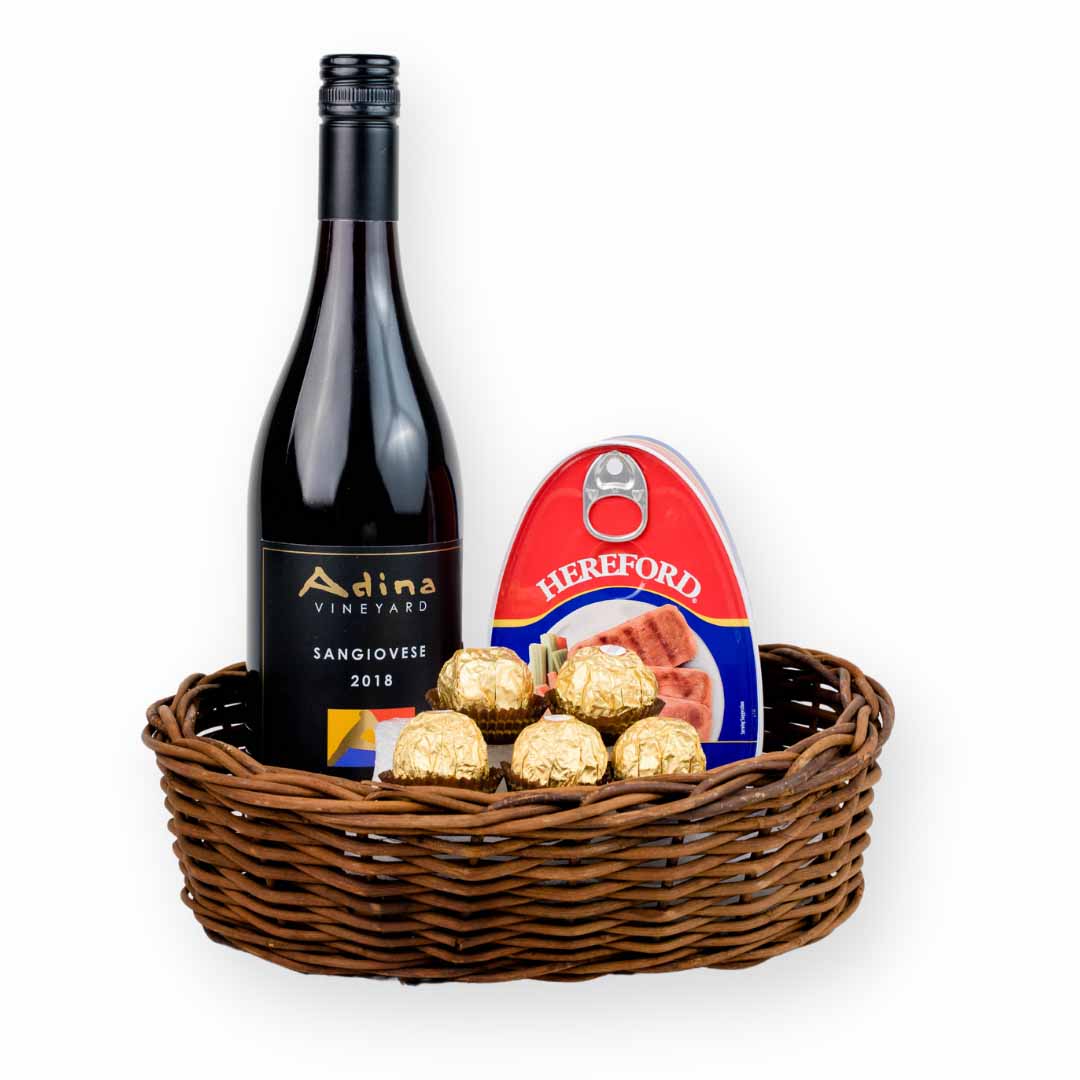 Looking for the perfect gift basket for a wine and chocolate lover? Consider the Sangria and Ferrero Set, which includes a bottle of wine, a cooked ham, and delicious Ferrero chocolates, all presented in a beautiful gift basket.