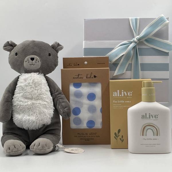 Your gifts are beautifully presented in a giftbox with matching blue ribbons & personalised giftcard attached
