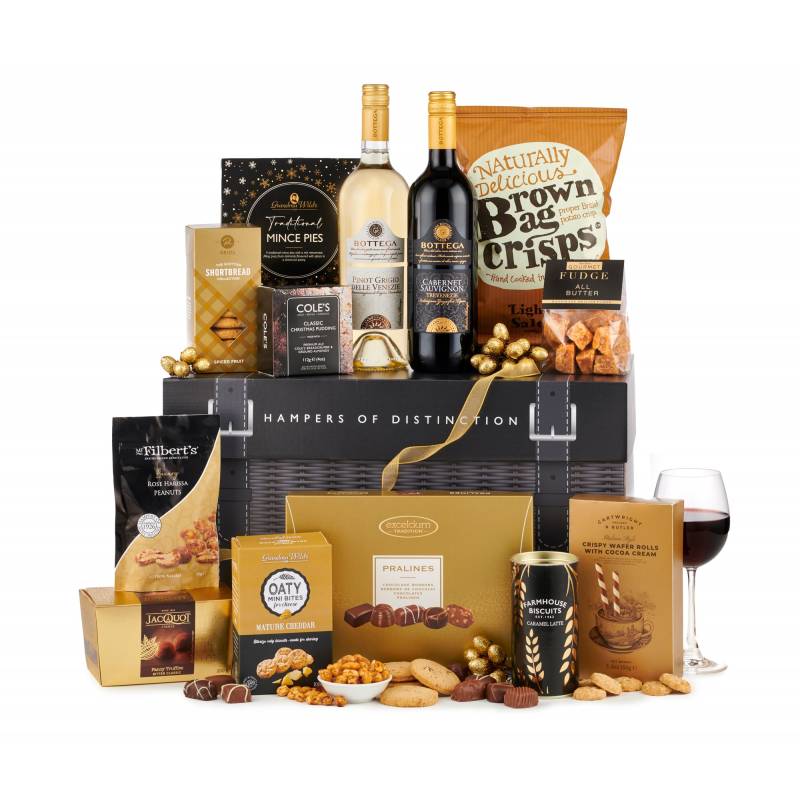 Presented in a Magnetic Hamper Valise Case Decorated in Luxury Satin Ribbon Greetings Card for your Personalised Message |